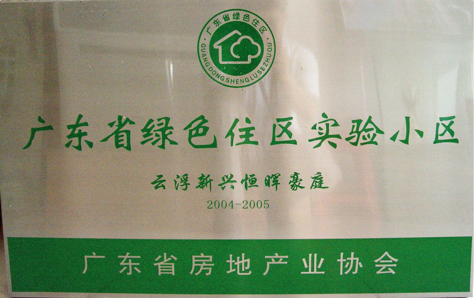 1、新兴恒晖豪庭被广东省房地产行业协会评为2010-2013年度 “广东省绿色住区”