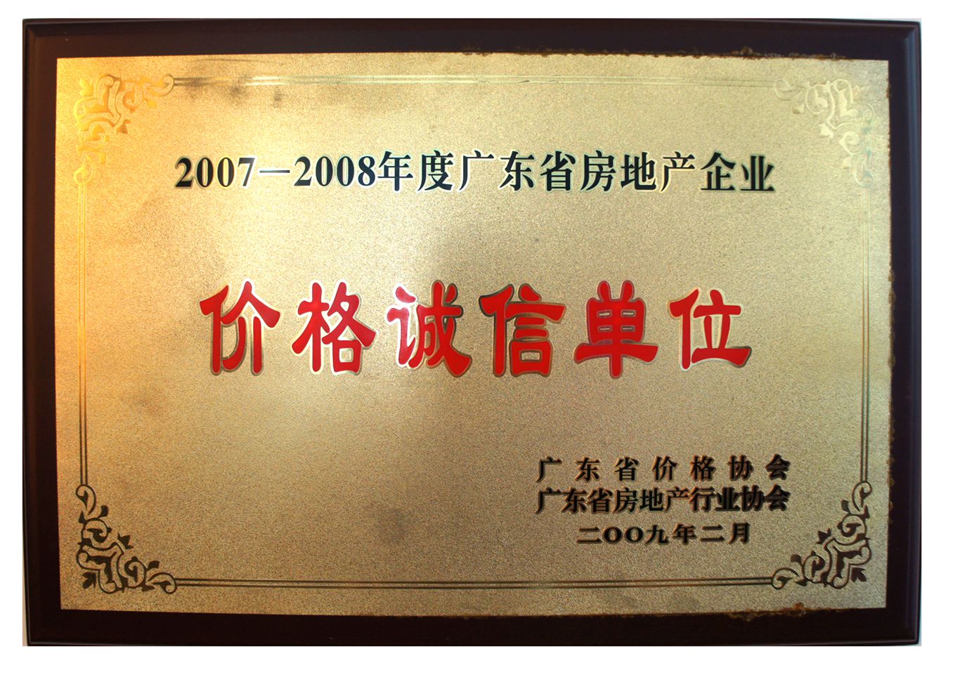 21、2007年6月恒升公司被云浮市价格协会、云浮市工商联、云浮市消委会评为“云浮市房地产行业价格诚信单位”。