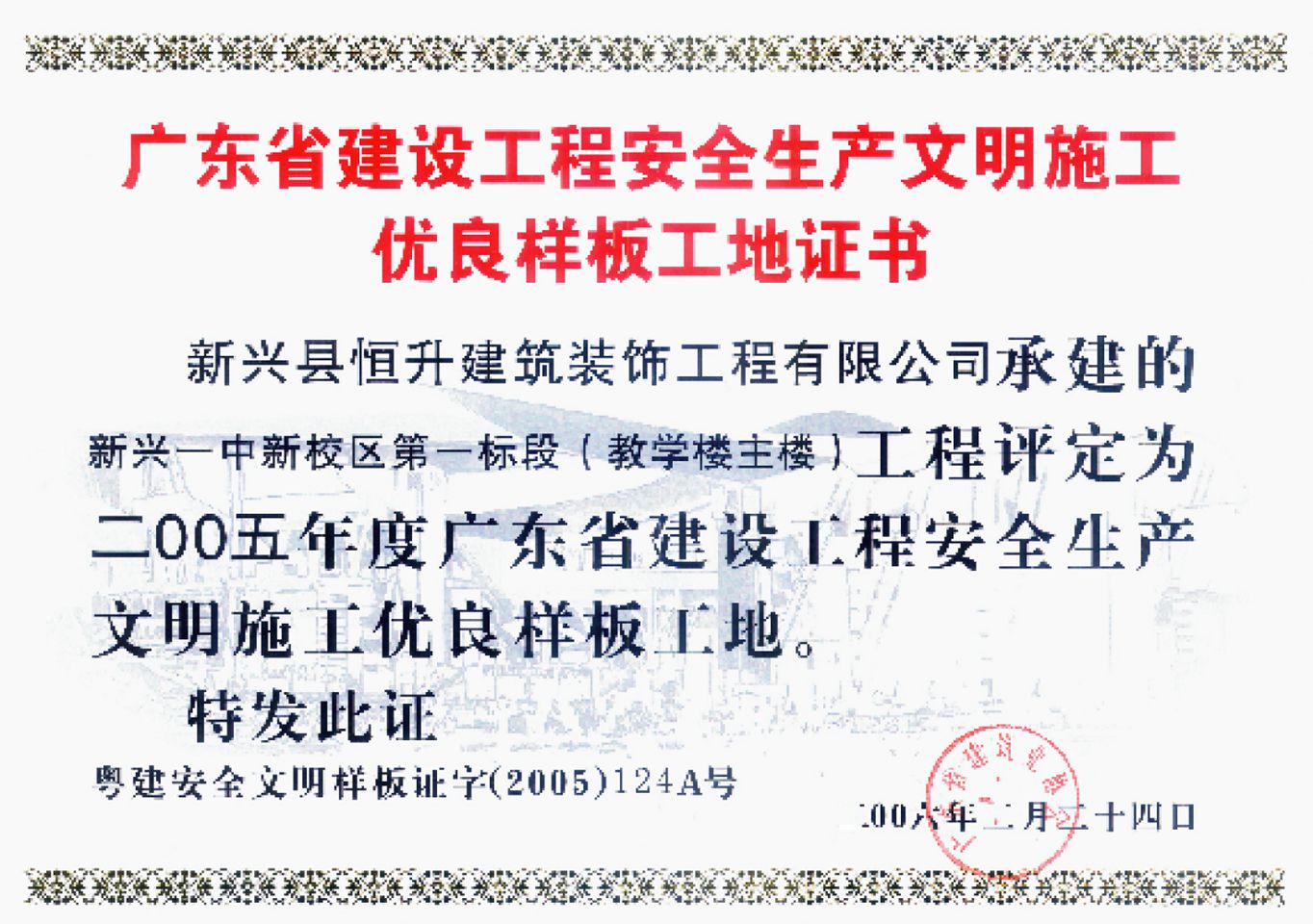 23、2007年1月恒晖豪庭P幢被广东省建筑业协会评为“2006年广东省建设工程安全生产文明施工优良样板工地”。