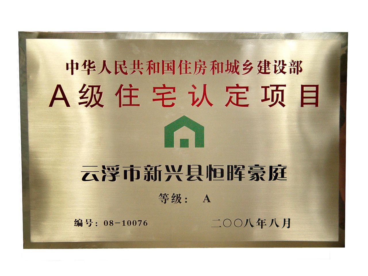 14、2008年6月23日由广东恒升公司开发的恒晖豪庭通过国家住宅性能A级认定。